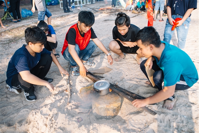 Một phần thi mang đến hứng thú cho các em là thi “nấu ăn trên hoang đảo” theo kiểu bếp dã chiến “Hoàng Cầm”, các đội sẽ được giao cho những dụng cụ và nguyên liệu để thực hiện một bữa ăn hoàn thiện nhằm ghi điểm cho đội của mình.