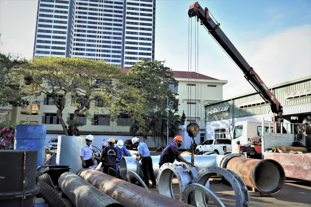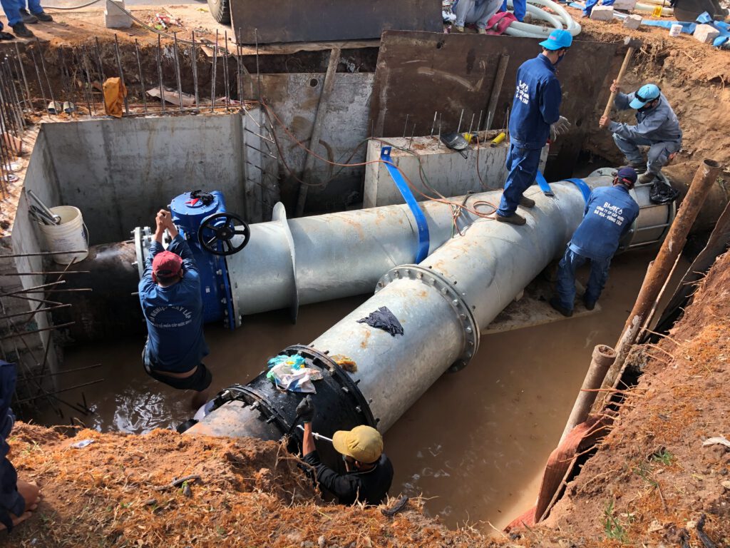Ngày 26/4/2020 vừa qua, XNXL đã phối hợp cùng các đơn vị tổ chức đấu nối thành công tuyến D1200 với tuyến ống D760 hiện hữu tại 2 điểm trước nhà máy Sông Dinh và Nhà máy nước ngầm.